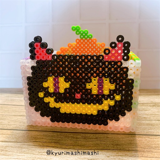 アイロンビーズで黒猫とかぼちゃおばけのお菓子入れ - きゅうりましまし。