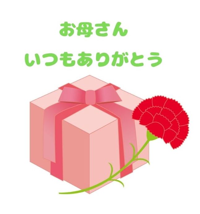 無料LINEスタンプ「母の日 カーネーションとプレゼント お母さんいつもありがとう」無料LINEスタンプ。