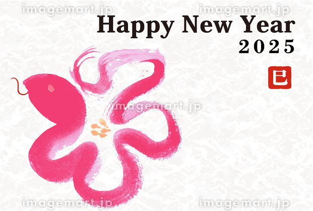 年賀状 デザイン 2025年 巳年 年賀状用テンプレート 巳手書き和風筆文字入りのイラスト素材118817250- PIXTA。