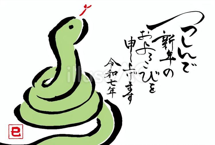 年賀状 デザイン 2025年 巳年 年賀状用テンプレート 巳手書き和風筆イラスト入りのイラスト素材119328785- PIXTA。