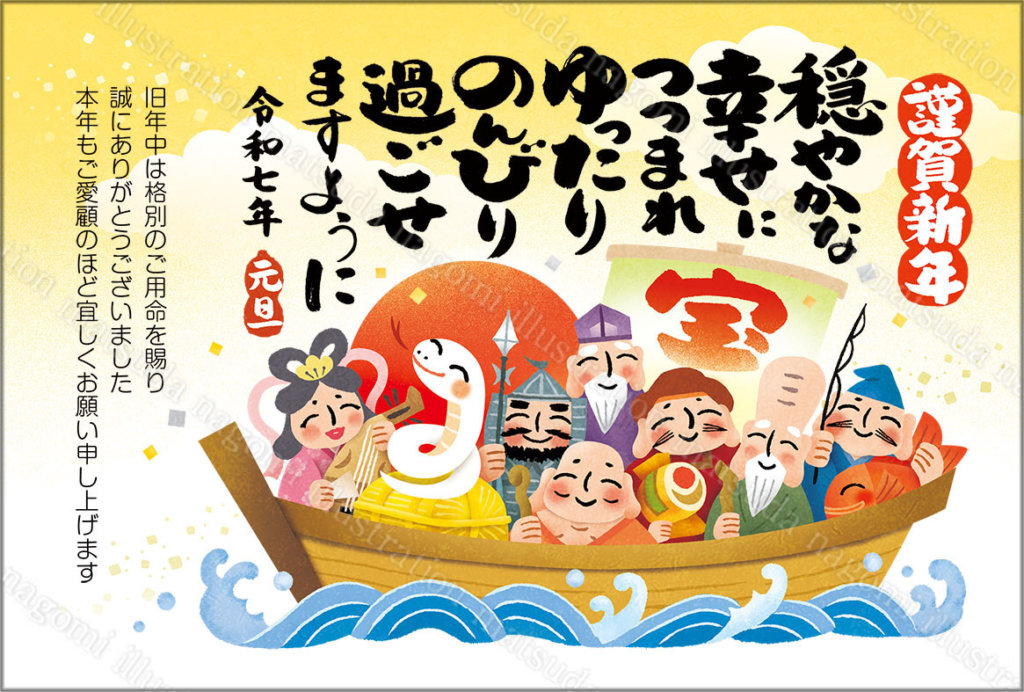 年賀状 2025 はがきテンプレート へびの宝船 巳年 巳 墨絵 水彩 かわいい 絵手紙のイラスト素材260841591- イメージマート。