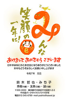 年賀状 デザイン 2025年 巳年 年賀状用テンプレート 手描き和風イラスト入り265681983- イメージマート。