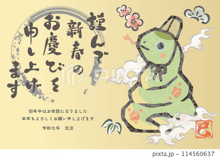 巳年 巳 蛇 年賀状 年賀2025 土鈴 版画 墨絵 筆文字 かわいい モダン 絵手紙 イラストのイラスト素材114560648- PIXTA。