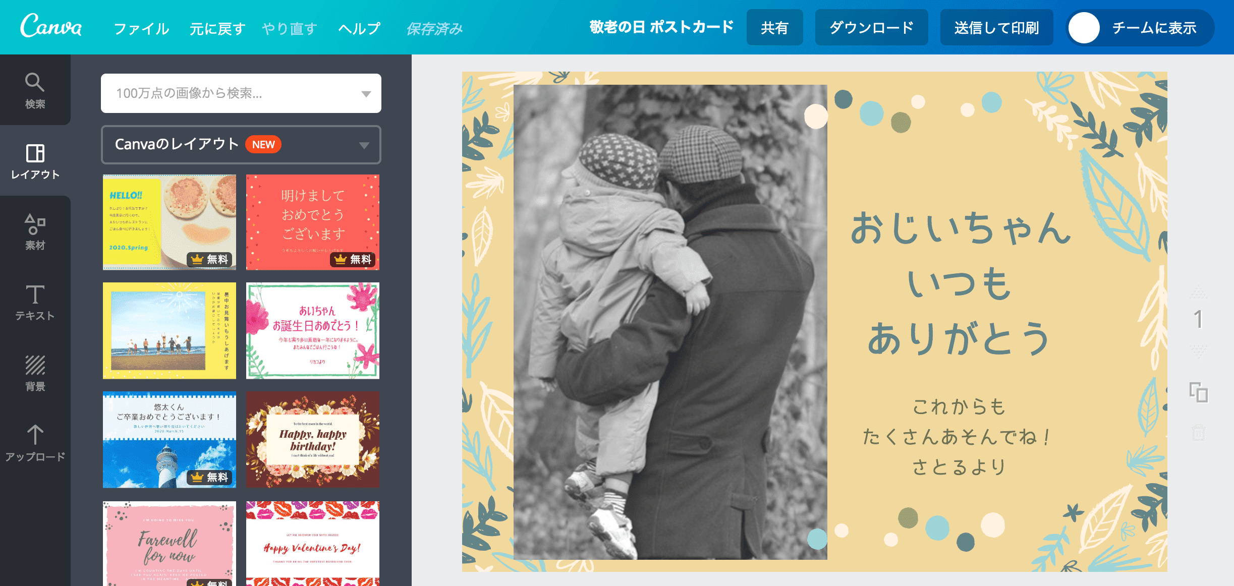 敬老の日のメッセージカードテンプレートでおしゃれなデザインを無料で作成!Canva。
