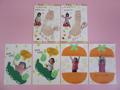 敬老の日のはがき製作にじいろ保育園ブログ。