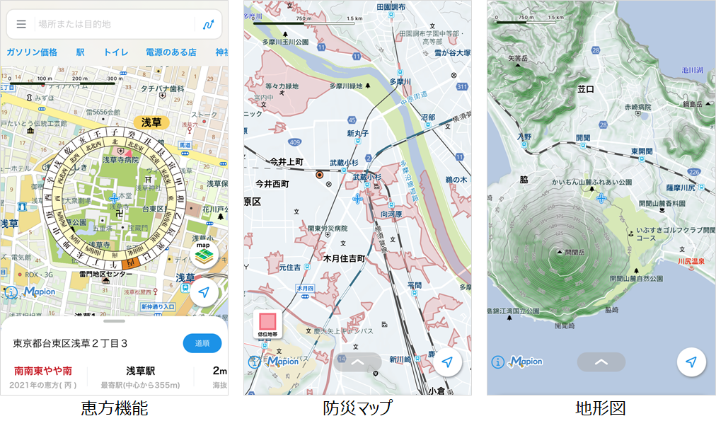 アプリ「地図マピオン」に恵方機能、防災マップ、地形図を追加株式会社ONE COMPATH ワン・コンパス。