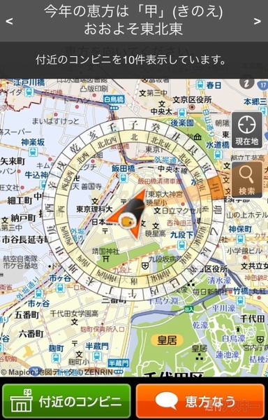 今年の恵方はどっち? 毎年2月3日に数万人が利用、“恵方巻”専用地図アプリ「恵方マピオン」が食べる方角を正確に提示 -INTERNET Watch。