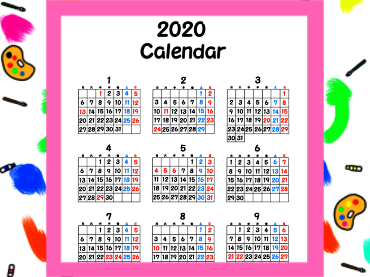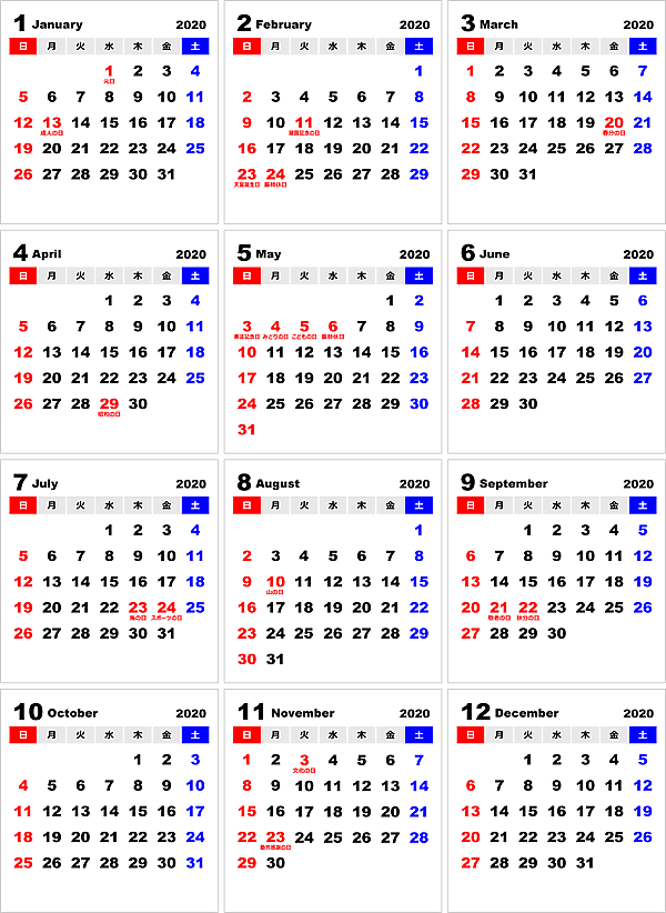 2020年 年間カレンダー PDF - こよみカレンダ。