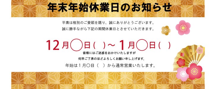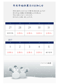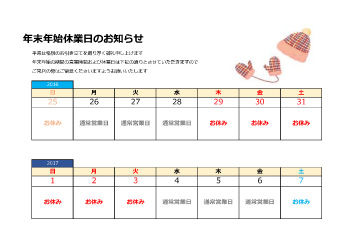 年末年始のカレンダー・張り紙素材、病院の休診日やお店・会社の休業日のお知らせ・案内に便利 イラストボックス「プレミアム」テンプレート。
