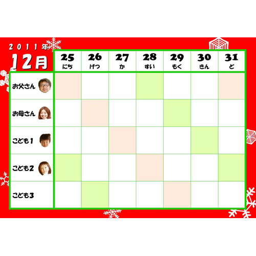 スケジュール表年末年始・ファミリー- 無料テンプレート公開中 - 楽しもう Office。