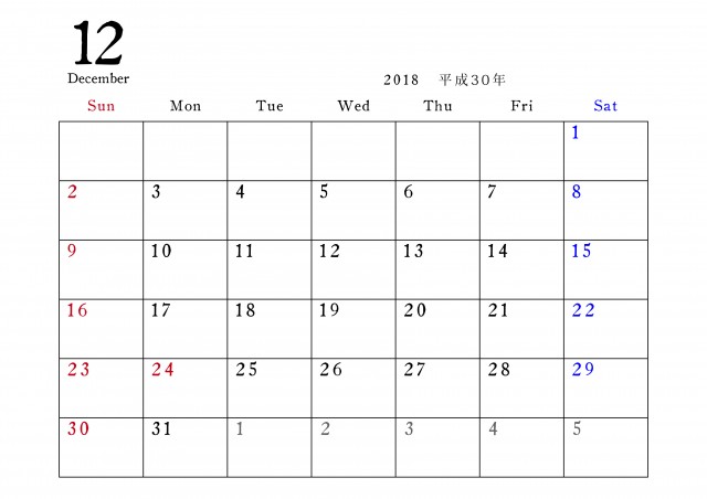 2018年カレンダー 12月無料イラスト素材素材ラボ。