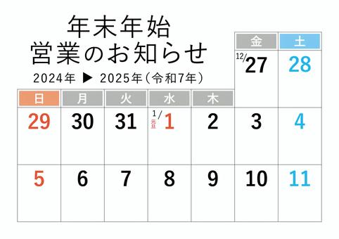 2024年→2025年 年末年始休みカレンダーのイラスト素材120098008- PIXTA。