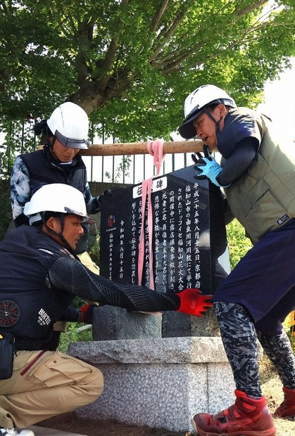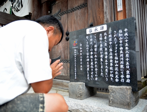 両丹日日新聞:花火大会屋台事故の記憶残す伝承碑 現場近くに寺院に設置ニュース。