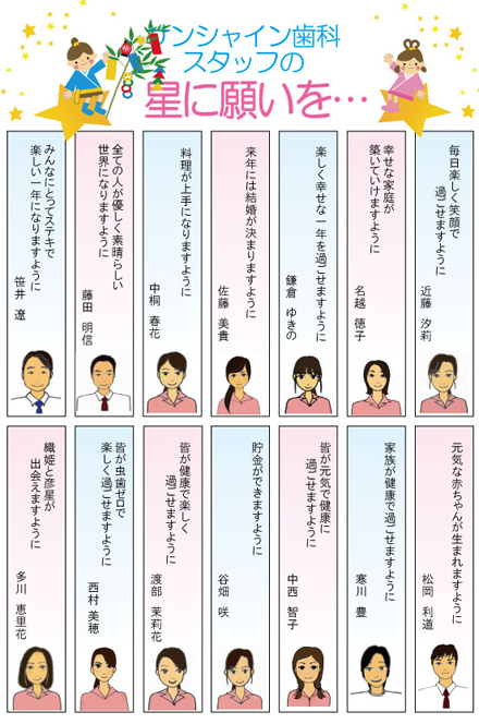 ☆七夕イベント☆スタッフの願い事高松の歯医者なら多肥下町の サンシャイン歯科。