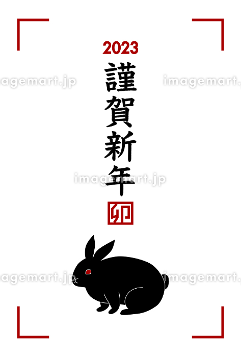 2023年卯年 年賀状イラスト: 謹賀新年とうさぎ 黒と赤 縦194697674- イメージマート。