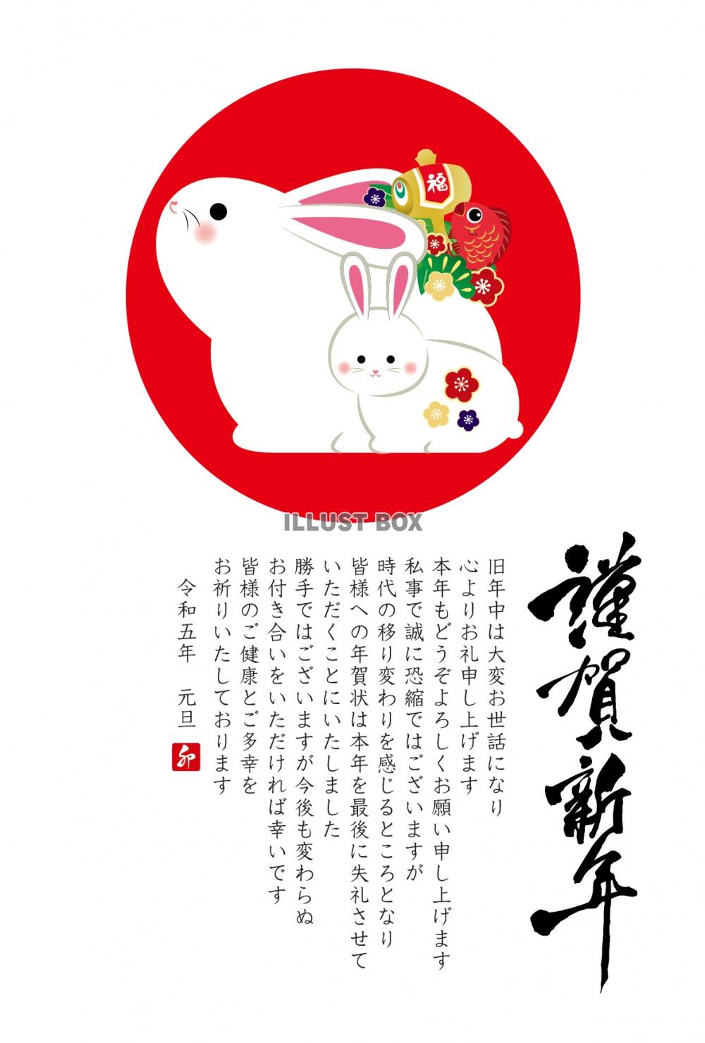 2023年卯年年賀状テンプレート 年賀状じまい文章付き 縦:イラスト無料。