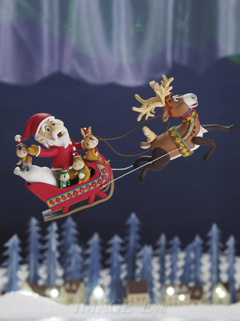 クリスマス☆ソリ☆サンタクロース トナカイ サンタとトナカイとプレゼントを積んだソリの。