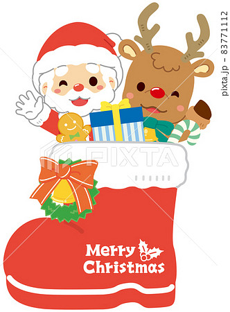 プレゼントと一緒にクリスマスブーツに入っちゃったサンタさんとトナカイくんのイラスト素材83771112- PIXTA。