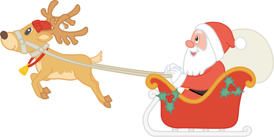 サンタのソリとトナカイイラストのフリー素材イラストイメージ。