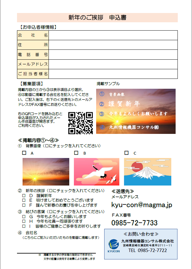 謹賀新年のご挨拶を1月1日から放送します。その動画の作成の様子をご紹介します。九州情報機器コンサル㈱。