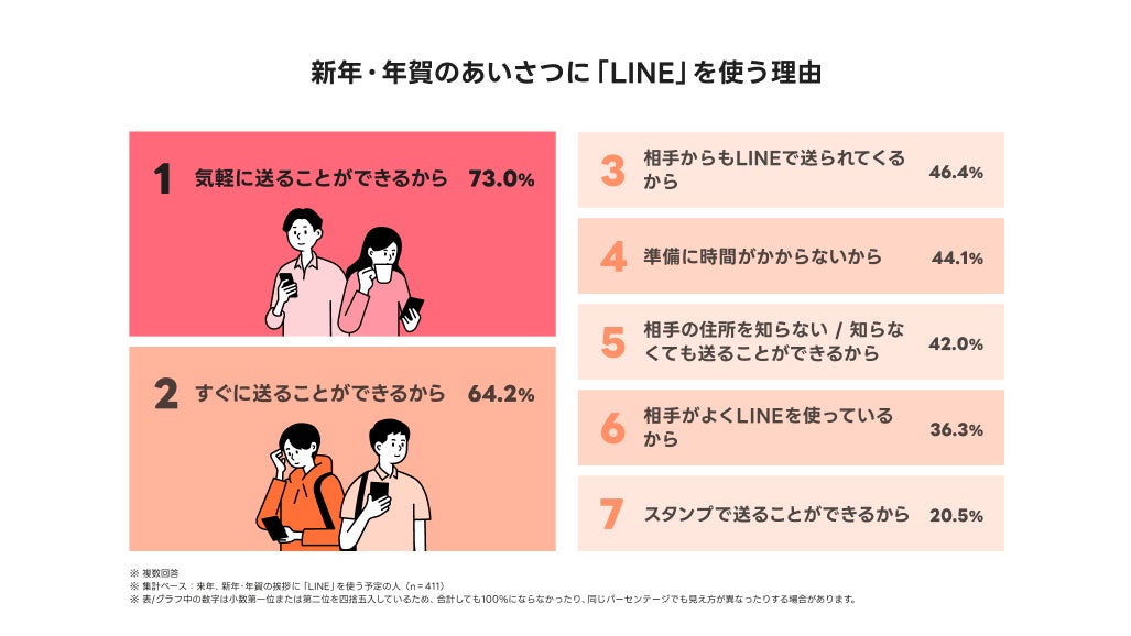 最新!Z世代、新年の挨拶・“あけおめLINE”事情調査 新年の挨拶で「LINE」を使ったことがあるZ世代は9割!来年、使用予定の人も8割以上。うれしい組み合わせ1位は「メッセージ+スタンプ」LINE株式会社のプレスリリース。