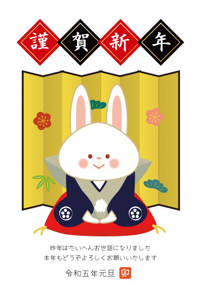 新年の挨拶をしているうさぎの年賀状2023年度版無料イラスト素材素材ラボ。
