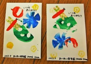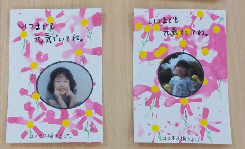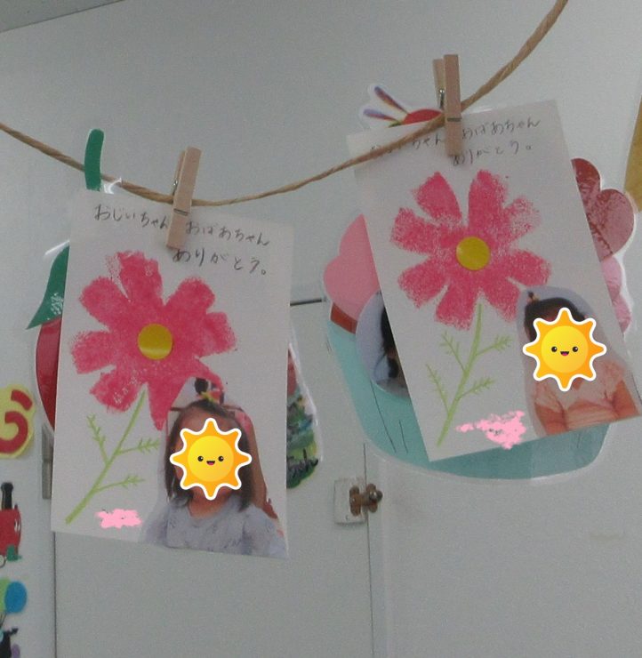 敬老の日のはがき製作にじいろ保育園ブログ。