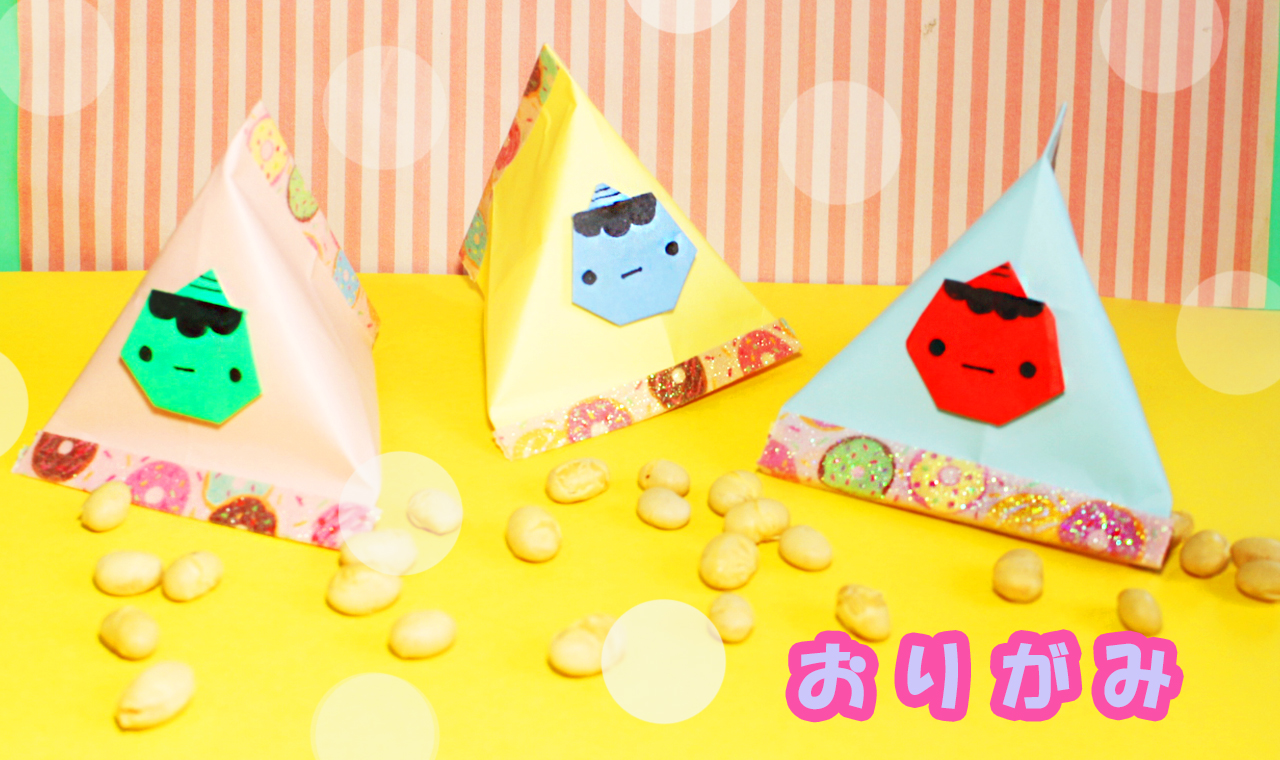 折り紙で作るかわいい鬼の豆入れ節分豆まきの楽しみ方。