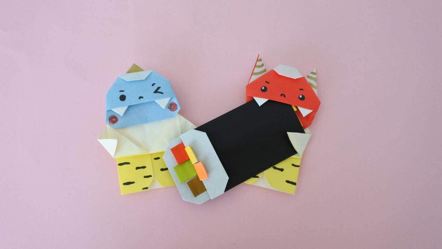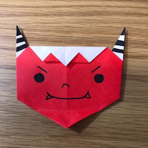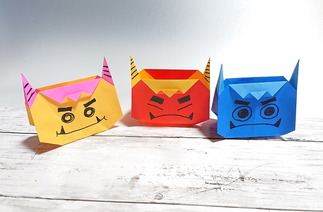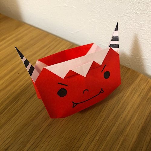 節分にぴったり!かわいい鬼の豆入れ折り紙作り方。
