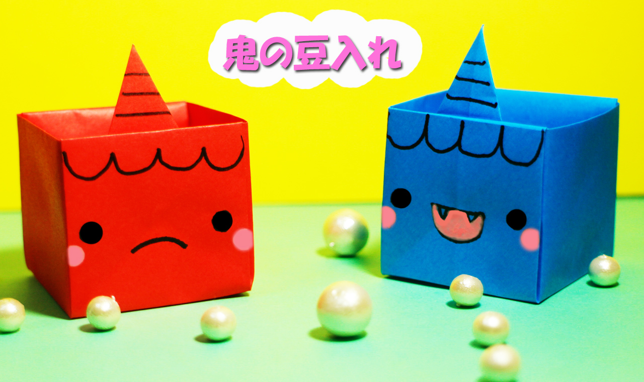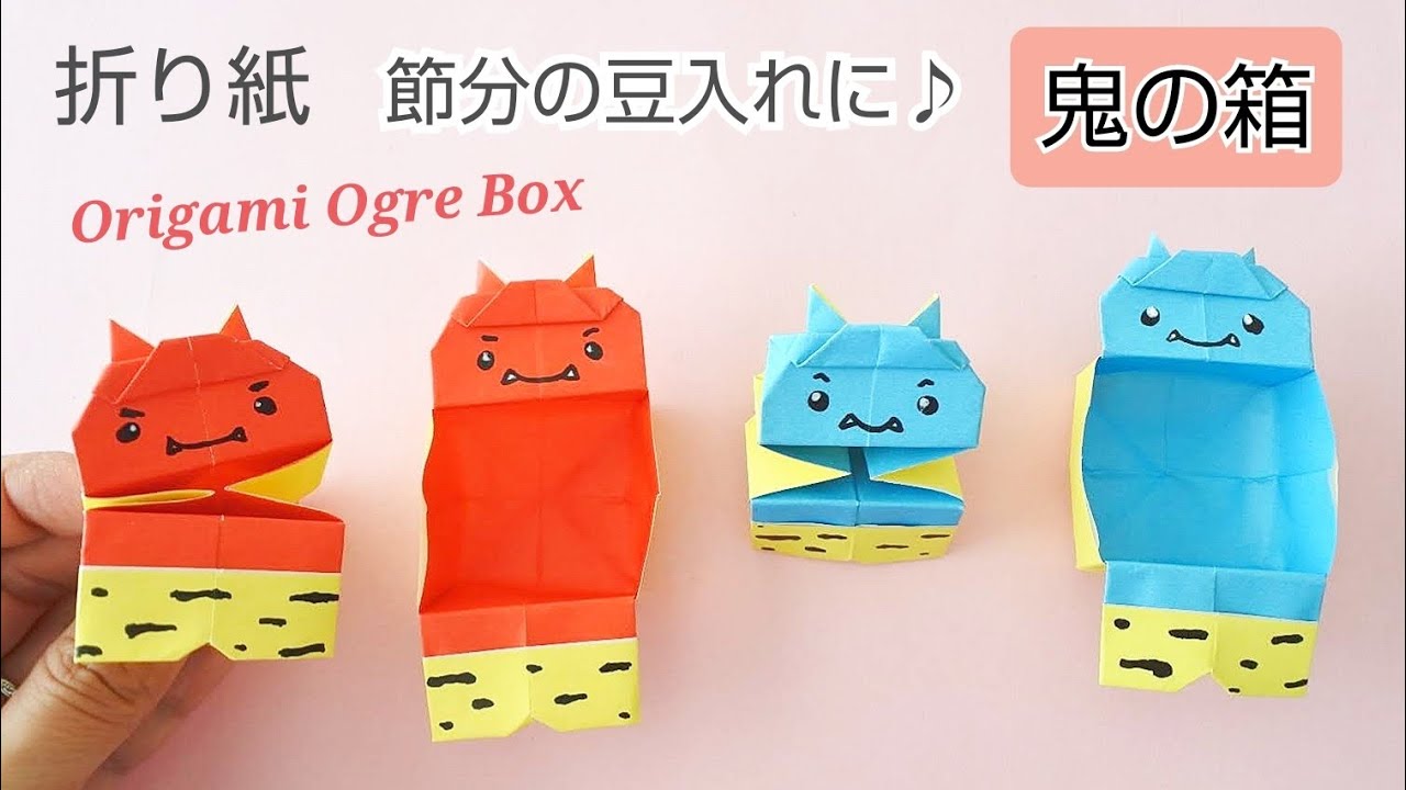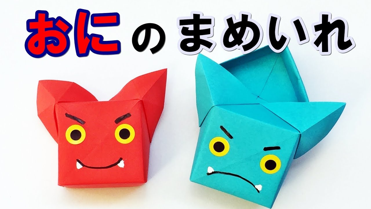 節分の折り紙 鬼の豆入れ箱の折り方 音声解説あり 1枚で簡単!豆まきに使える実用使いの折り紙。