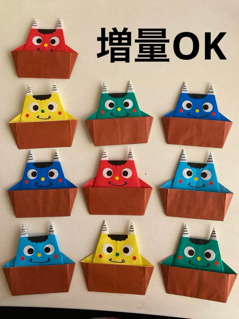 節分 豆まき 鬼 折り紙 豆入れ ハンドメイド 保育園 幼稚園 老人ホーム 施設 - メルカリ。