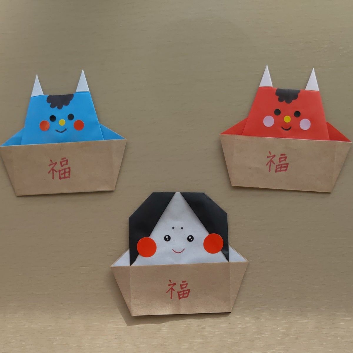 節分の鬼や箱を折り紙で作ってみよう!折り方をご紹介ママリ。
