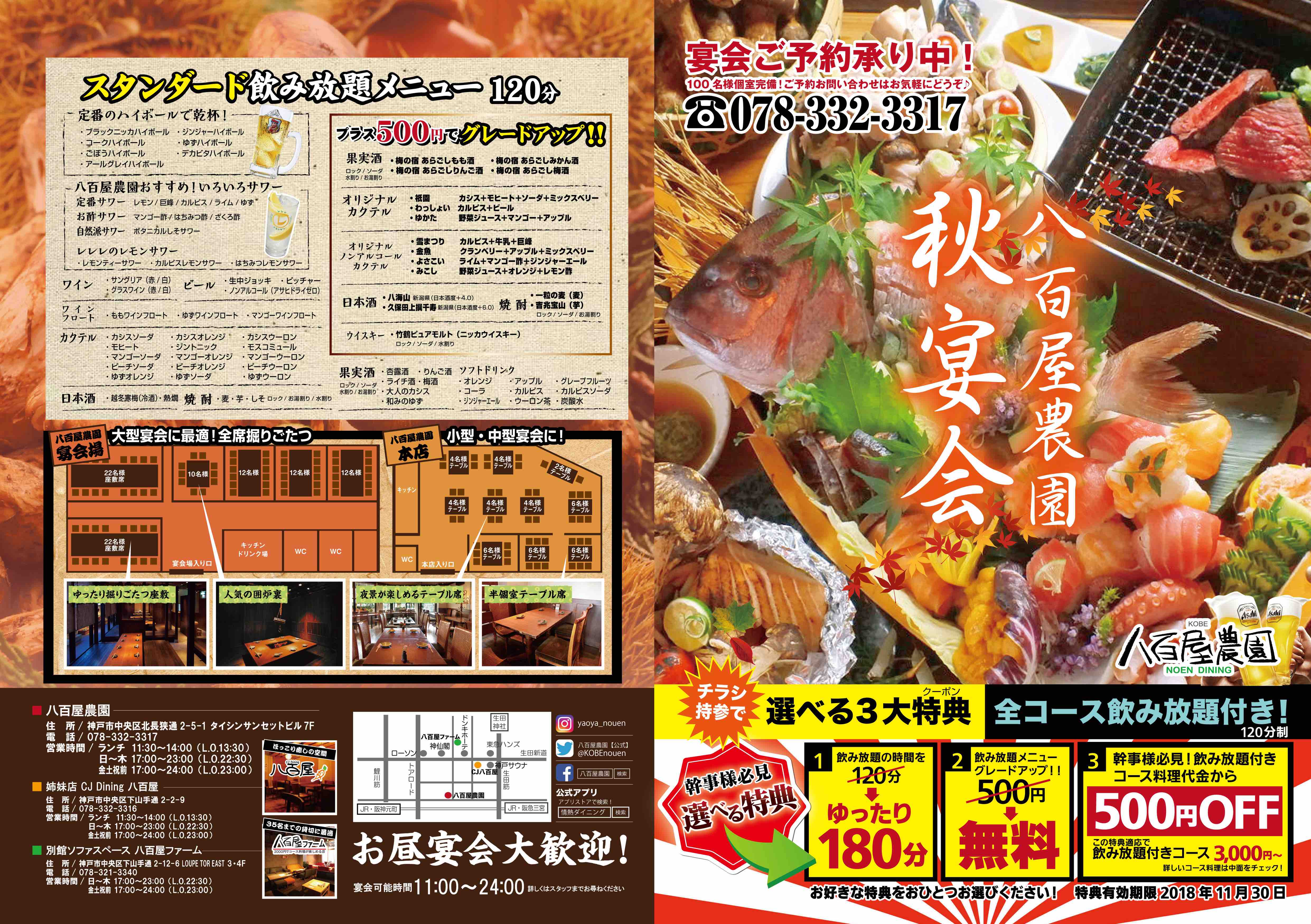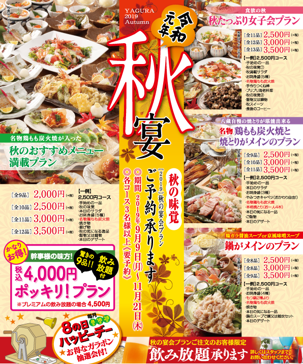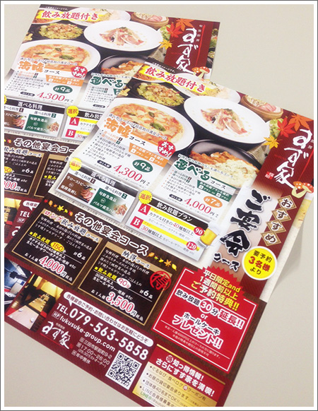 秋宴会ちらし看板デザインで店舗の集客力UP!八甲コーポレーション 大阪。