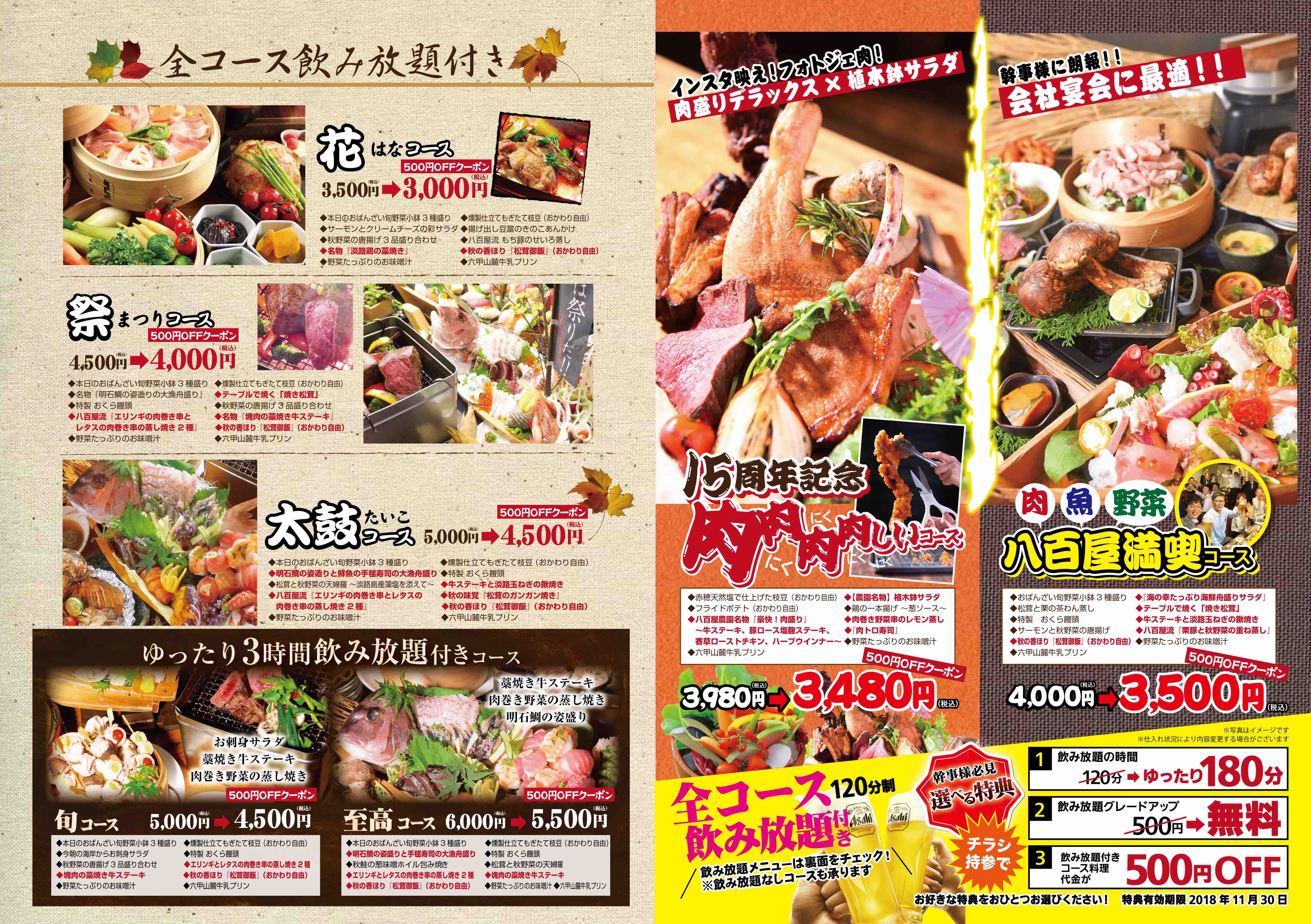 八蔵 秋の宴会プランのご案内株式会社AOKI。