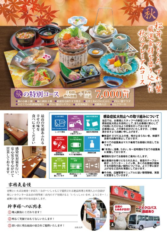 かきもと 秋の宴会コース始まりました。新宝フーズ株式会社 SHINHOU FOODS Inc.。