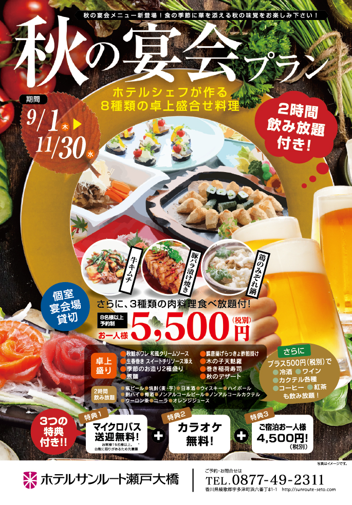 秋の宴会プランのご案内 9 1~10 31倉吉シティホテル 公式HP KURAYOSHI CITY HOTEL。