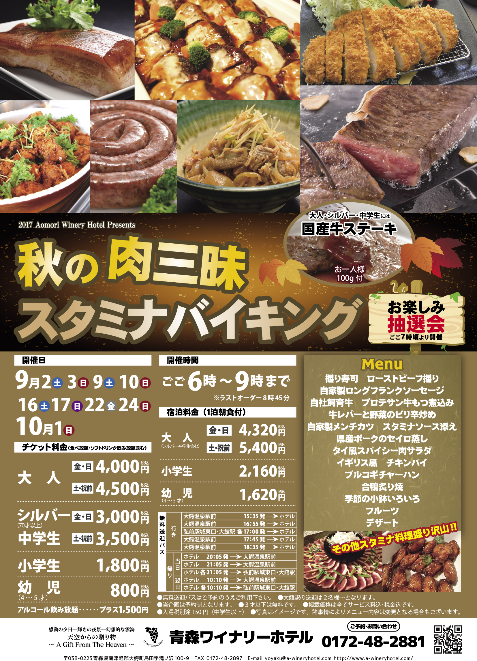 秋のイベント第2弾☆秋の肉三昧!スタミナバイキング☆ -公式 青森ワイナリーホテル 青森の絶景ホテル。