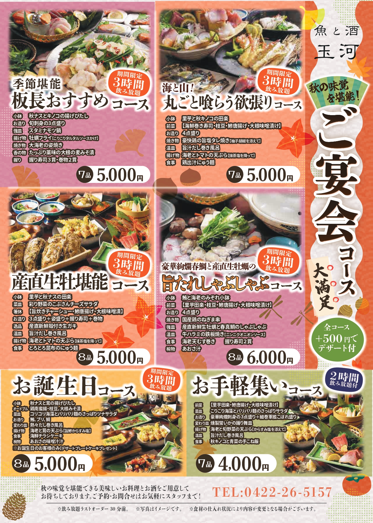 秋のおもてなし~秋宴会のご案内~甲羅本店 長岡。
