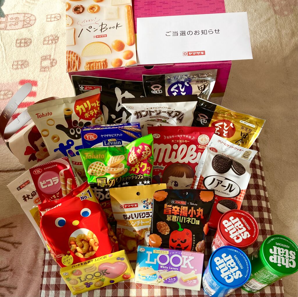 わーい🙌 ヤマザキ秋のわくわくプレゼントが当たった〜🎯 めっちゃいっぱいお菓子が詰まってる〜🍫🍬🍪🍘応募し続けること約20年、やっと当選したよ😭当選当選報告ヤマザキ秋のわくわくプレゼントヤマザキ秋のわくわくプレゼントキャンペーンヤマザキ秋の。