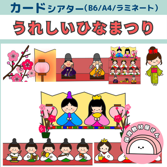 うれしいひなまつり♫ペープサート、ラミネートシアター!出し物保育教材桃の節句春の童謡仕掛け付き★。