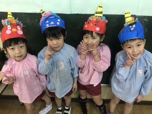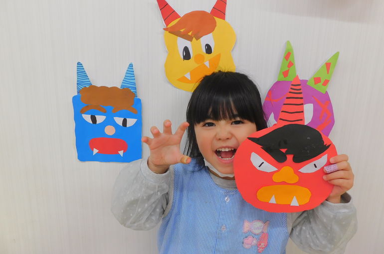 節分~お面製作・豆まき👹福岡市中央区の幼稚園「ふくはま幼稚園」 学校法人松栄学園。