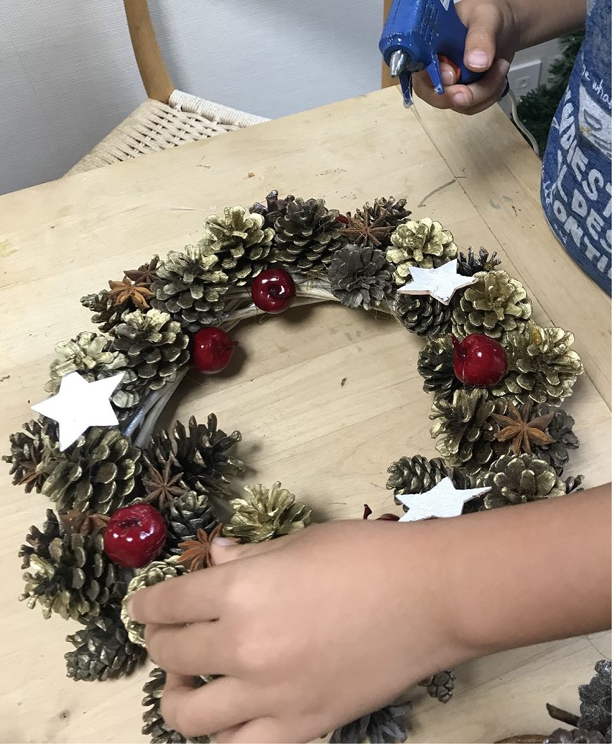 親子で「松ぼっくりのクリスマスリース」作り。自分で作ったリースを飾れば、クリスマスの楽しみがUPしそう♪湘南エリア横浜・湘南で子供と遊ぶ- あそびい横浜・湘南。