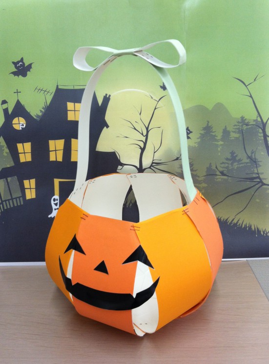 ハロウィン工作 かぼちゃのお菓子入れ・入れ物・箱 画用紙かわいい簡単工作 ジャック・オー・ランタン。
