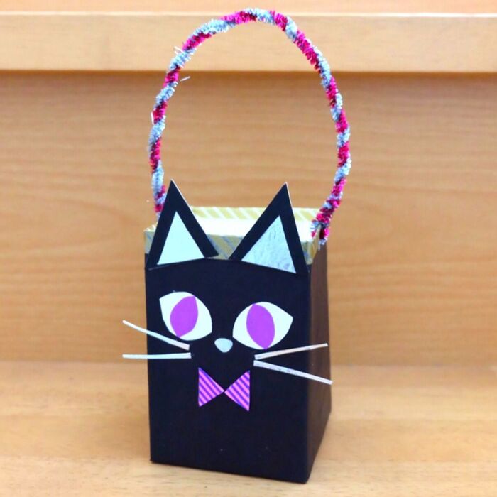 牛乳パックで黒猫のお菓子バッグを作ろう! 保育園・幼稚園。