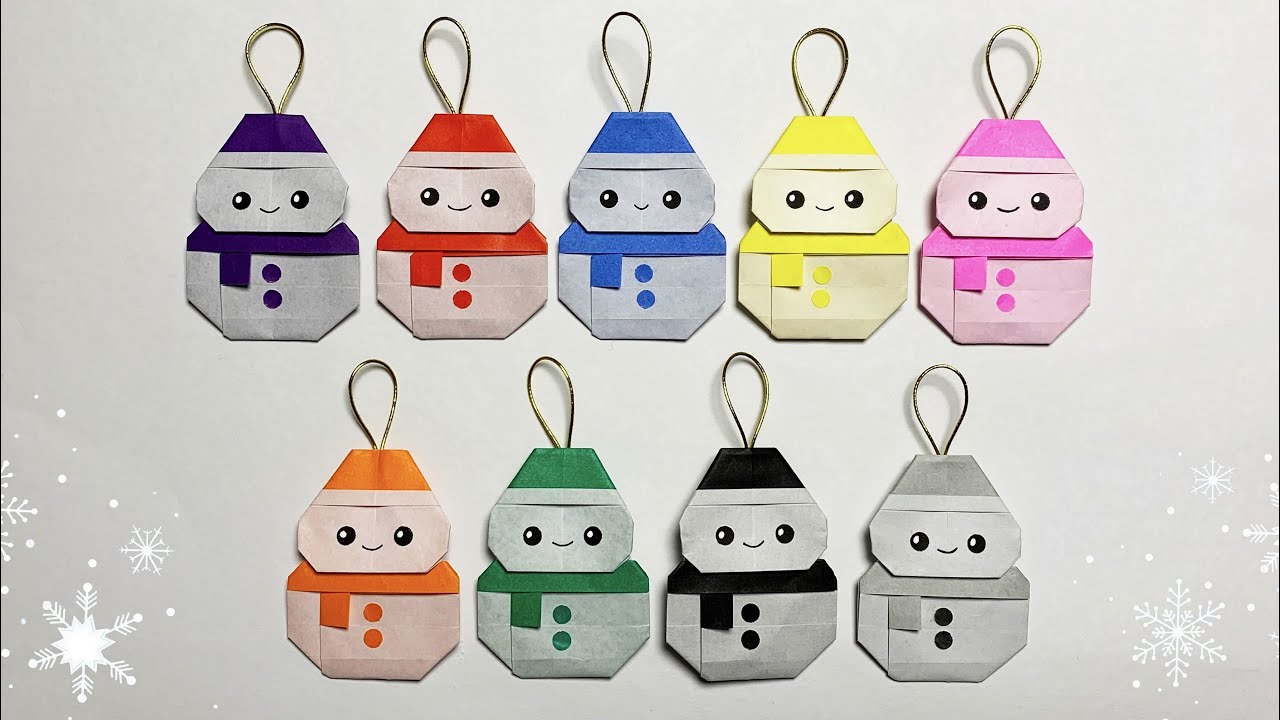 クリスマス折り紙1枚 雪だるま2種類の作り方⛄How to make paper Snowman 雪だるま雪人 눈사람 Christmas Snow 折り方 おりがみ origami 紙 종이 - YouTube。