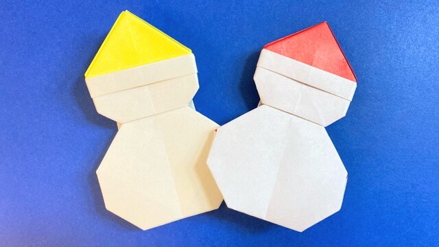 折り紙の雪だるまの折り方!一枚で折って帽子もかぶっているよ。