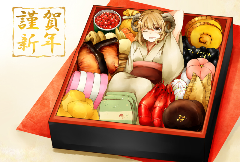 無料イラスト冬 かわいいおせち料理35215素材Good。