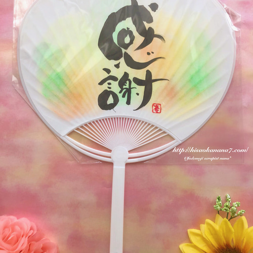 送料無料 手書きうちわ「感謝」*お誕生日などのお祝いにオススメ!追加でお名前などの文字入れも♪ 書道 筆文字アートnana* 通販12002457Creema クリーマ。