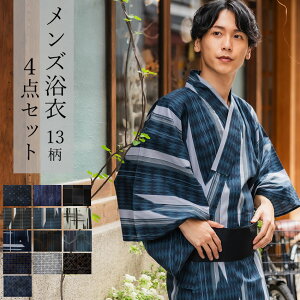 浴衣 セット メンズ 男性用浴衣セット 浴衣5点セット 浴衣+角帯+下駄+巾着+腰紐「綿麻 しじら織り浴衣 縞・格子・絣 全17柄」 S M LLL サイズ 綿麻浴衣 花火大会 夏祭り フェス 男性用 男性浴衣 ゆかた yukata送料無料メール便不可京都きもの町。