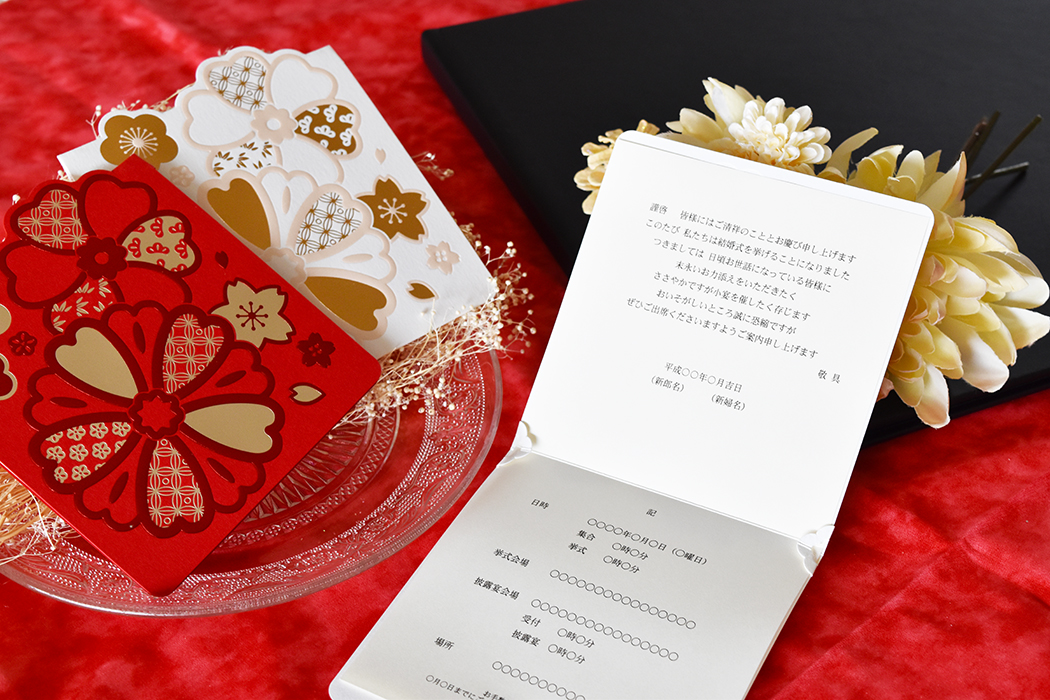 結婚式招待状 和花 赤簡単手作りキットムゲット。